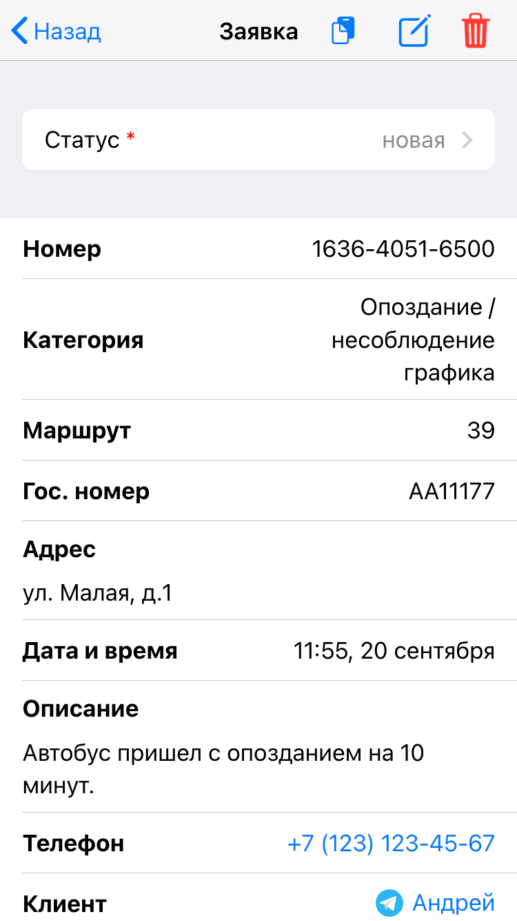 • Общение внутри заявки / диалог бизнеса с клиентом.
