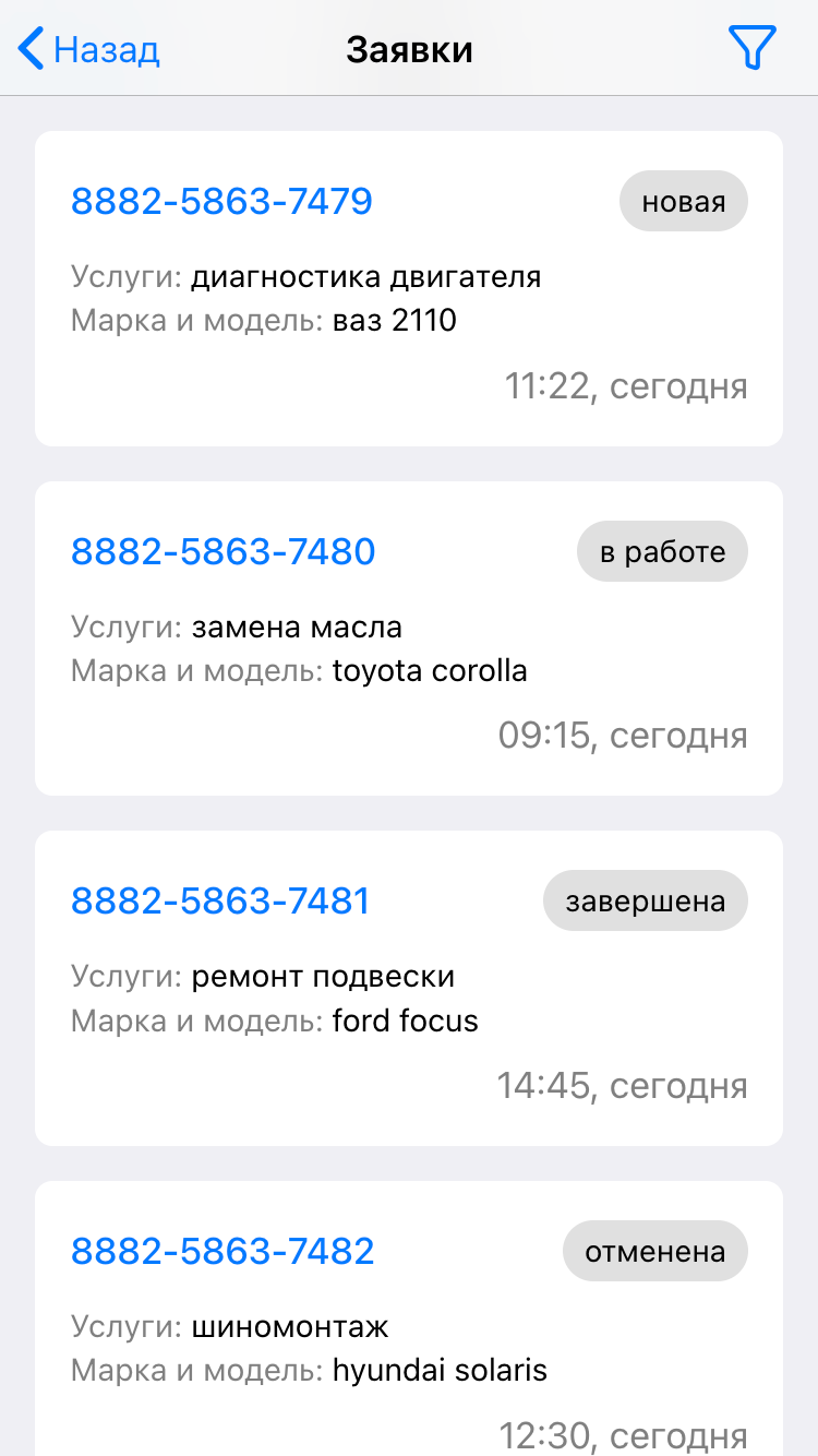 Сервис для бизнеса, который автоматизирует приём заявок и наводит порядок в работе. Все клиенты, заявки и сотрудники под контролем — информация собирается в одном месте и всегда доступна с телефона.