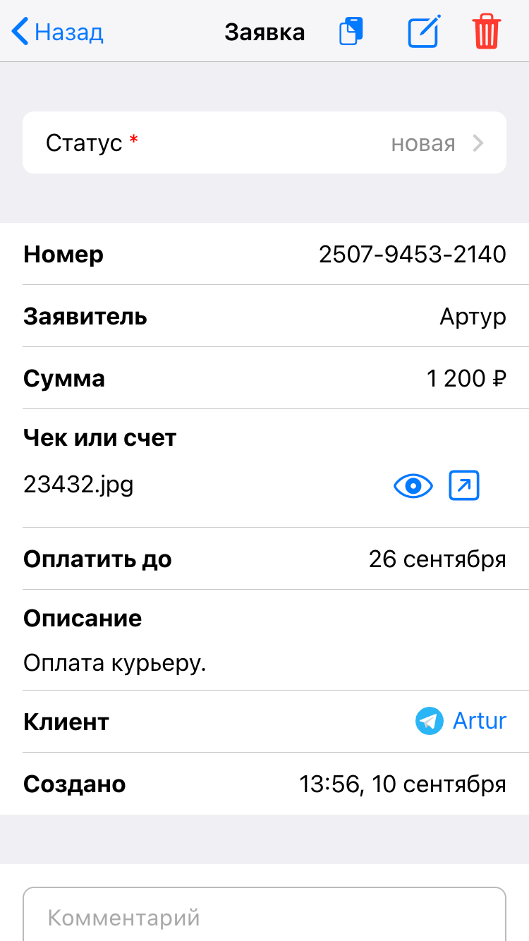 Прием и обработка заявок на платежи для компании через мессенджеры