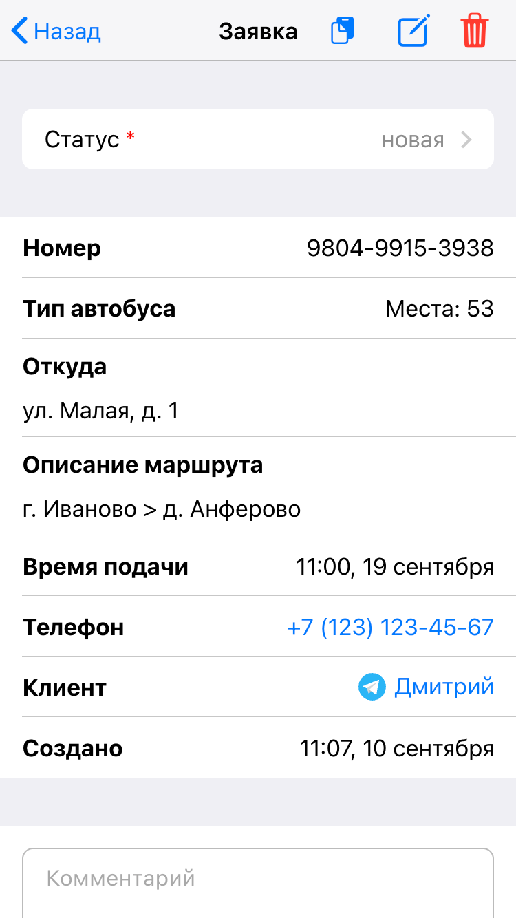 Прием и обработка заявок на заказ автобуса через мессенджеры