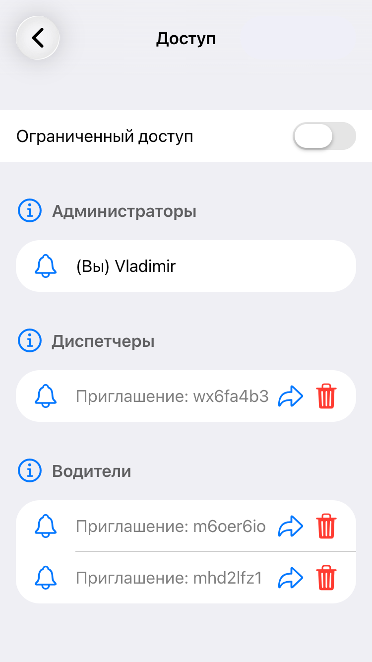 Доступ для диспетчеров и водителей