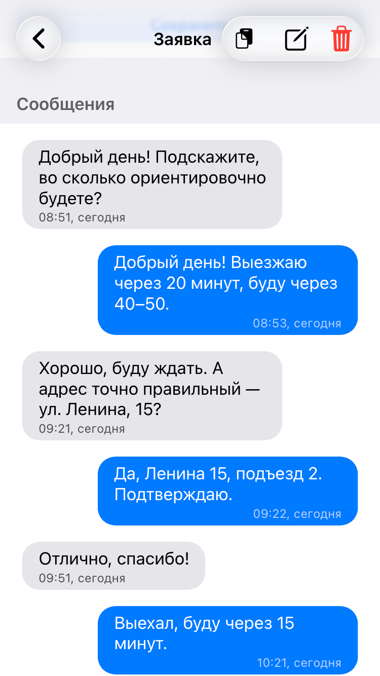 Общение с клиентом прямо в заказе
