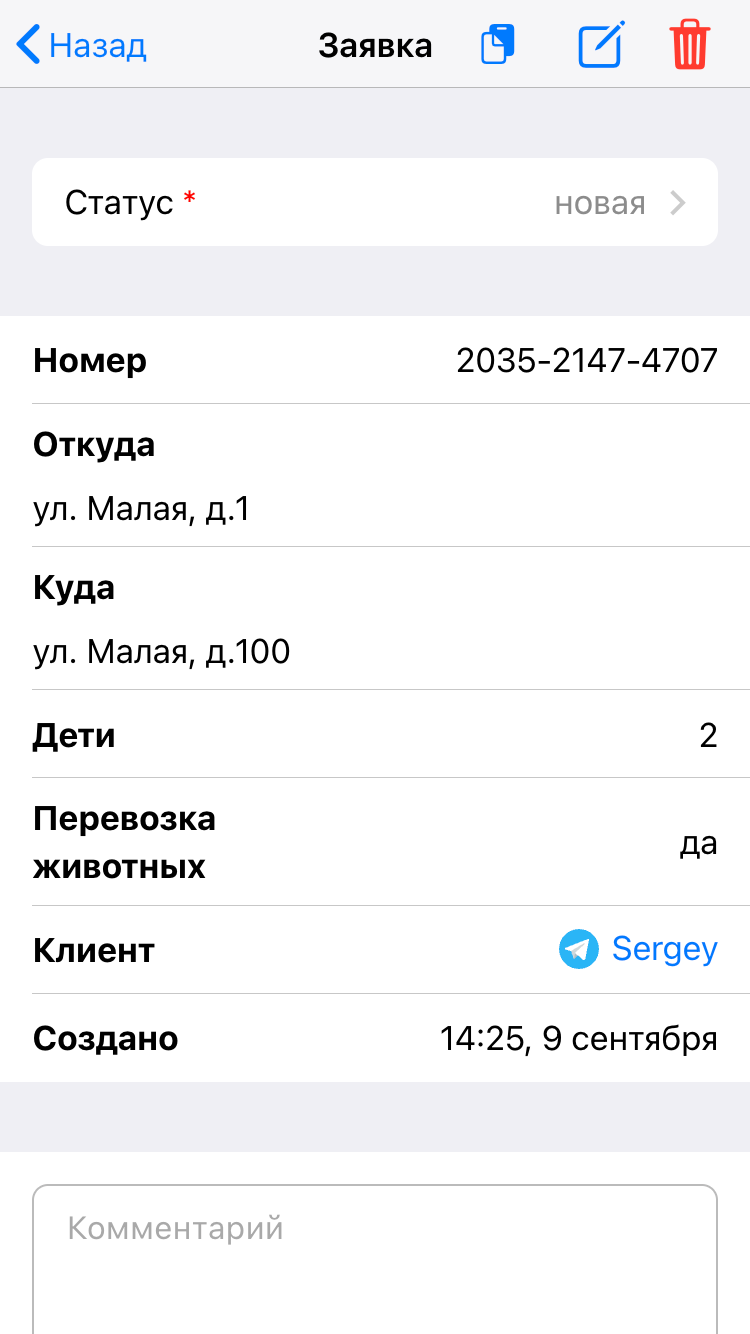• Общение внутри заявки / диалог бизнеса с клиентом.